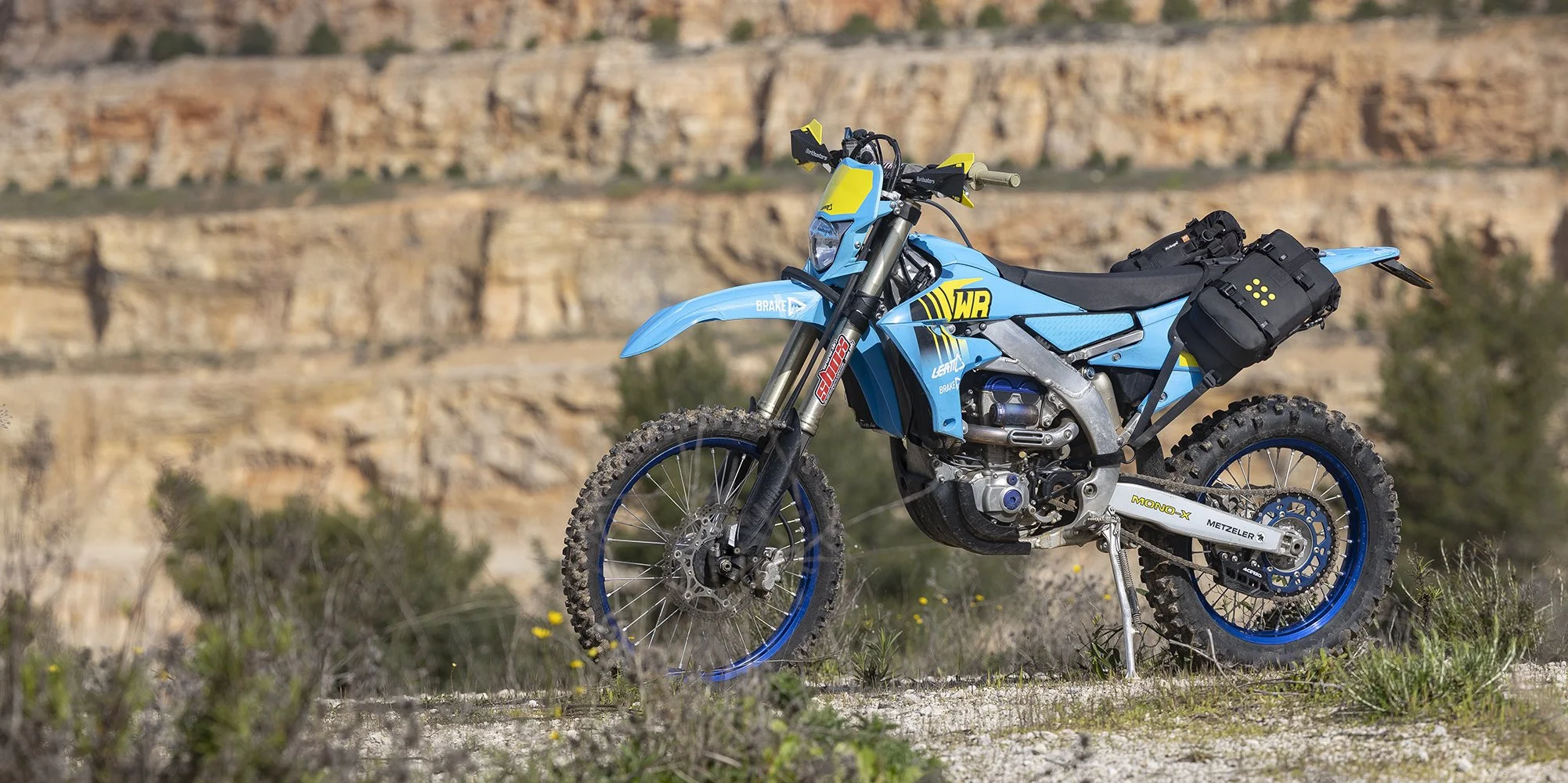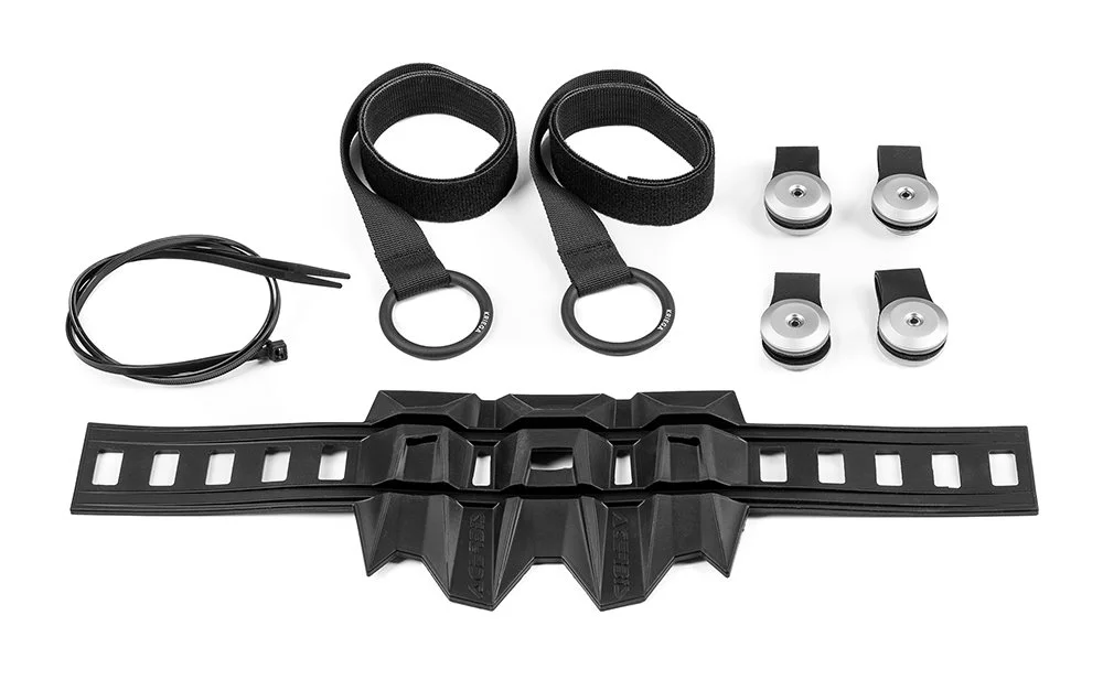 Designed to be a perfect fit on the latest lightweight enduro bikes with a custom shape and specific fitting hardware. The OS-BASE DIRTBIKE is an 'over the seat harness' for mounting OS-6, OS-12, or OS-18 ADVENTURE PACKS as soft panniers, with no need for metal frames or racks. This system provides a super-tough, lightweight carrying solution, with only slight bodywork alterations needed. The fitting hardware gives the flexibility to mount a one, two, or three-pack set-up, depending on your ride. The set-length straps make mounting quick and easy, and the custom shape provides a tight, secure fit with plenty of distance from the exhaust. It takes less than a minute to mount and just seconds to remove it.